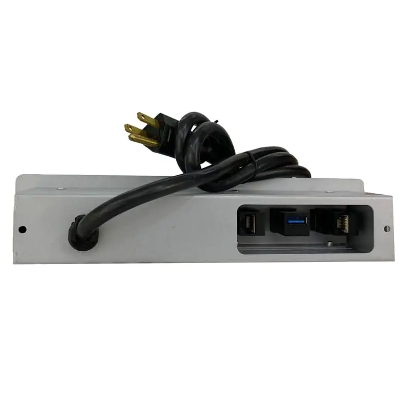 Su sistema es desarrollado para estar libre a la superficie, es decir, sin tapa para ocultar contactos y de esta manera tener la posibilidad de conectar cualquier adaptador o dispositivo sin preocuparnos por el tamaño de este. Fabricado en Acero con recubrimiento de pintura electrostática las cual nos ayuda a proteger la calidad y tiempo de vida del color.