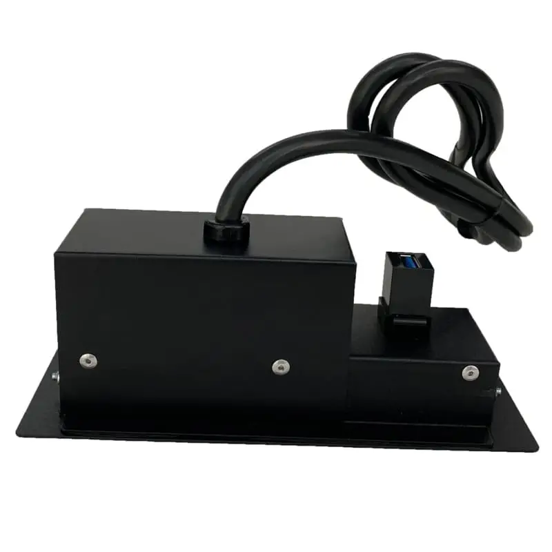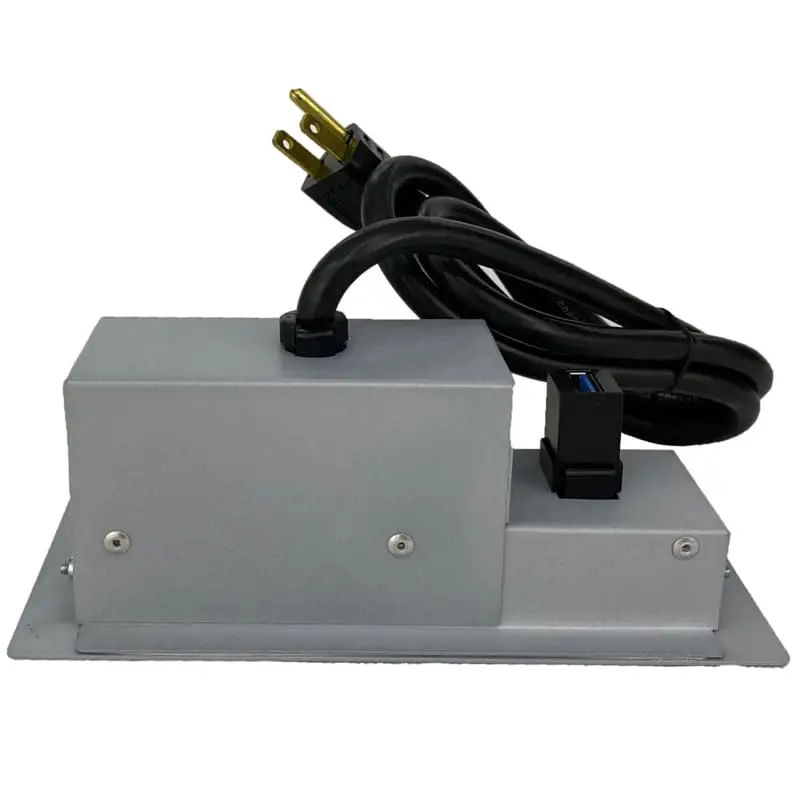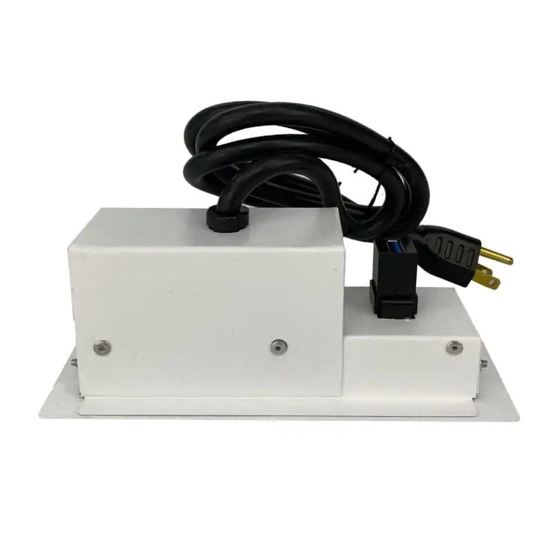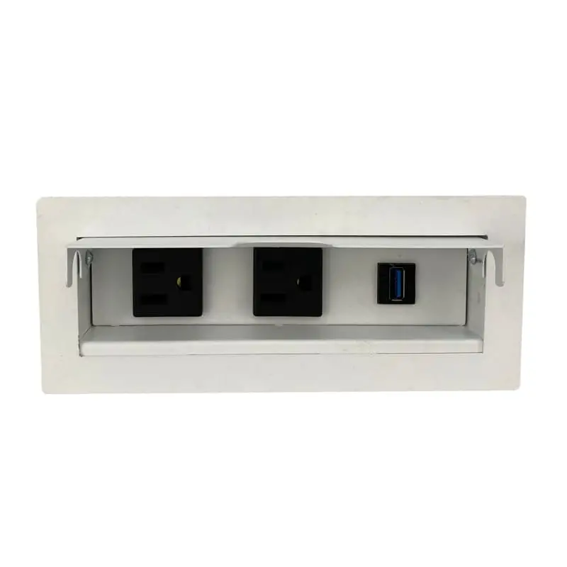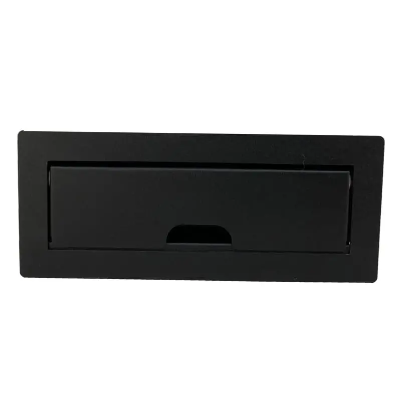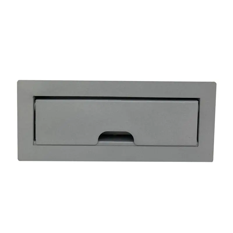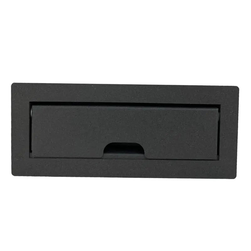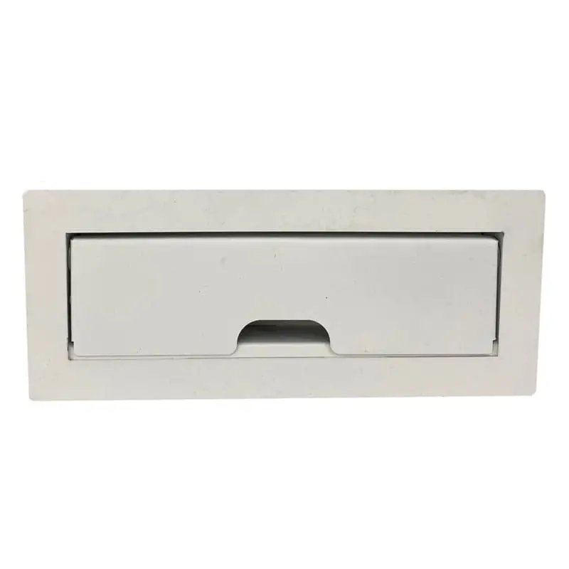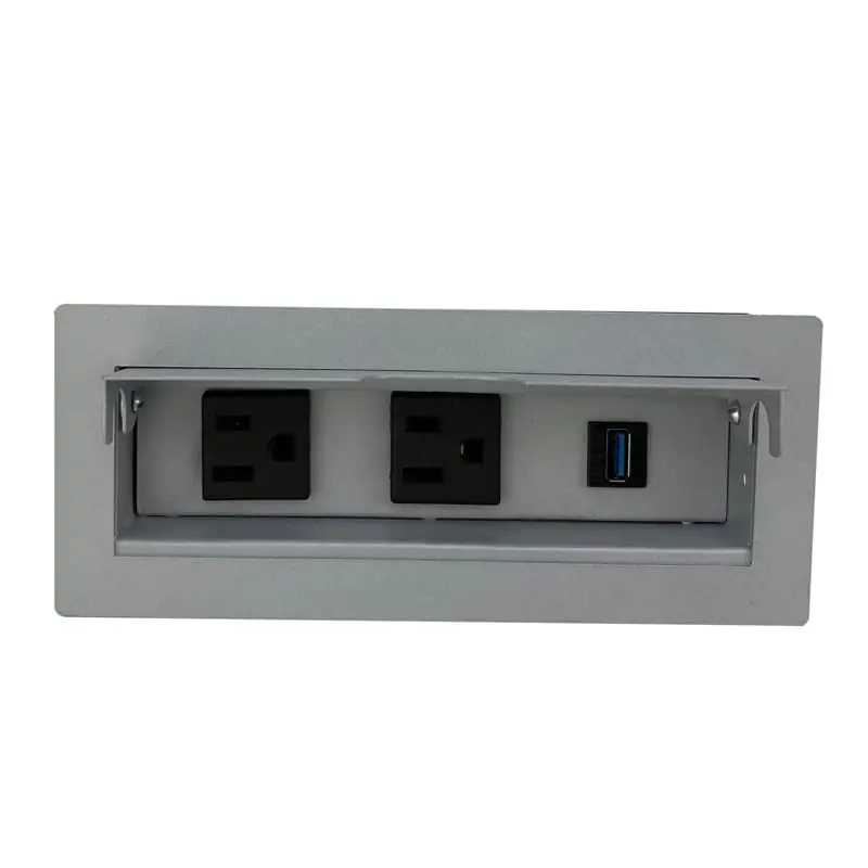 Su sistema de apertura es manual mediante una puerta que nos ayuda a ocultar los contactos cuando no son utilizados. Fabricado en Acero con recubrimiento de pintura electrostática las cual nos ayuda a proteger la calidad y tiempo de vida del color.