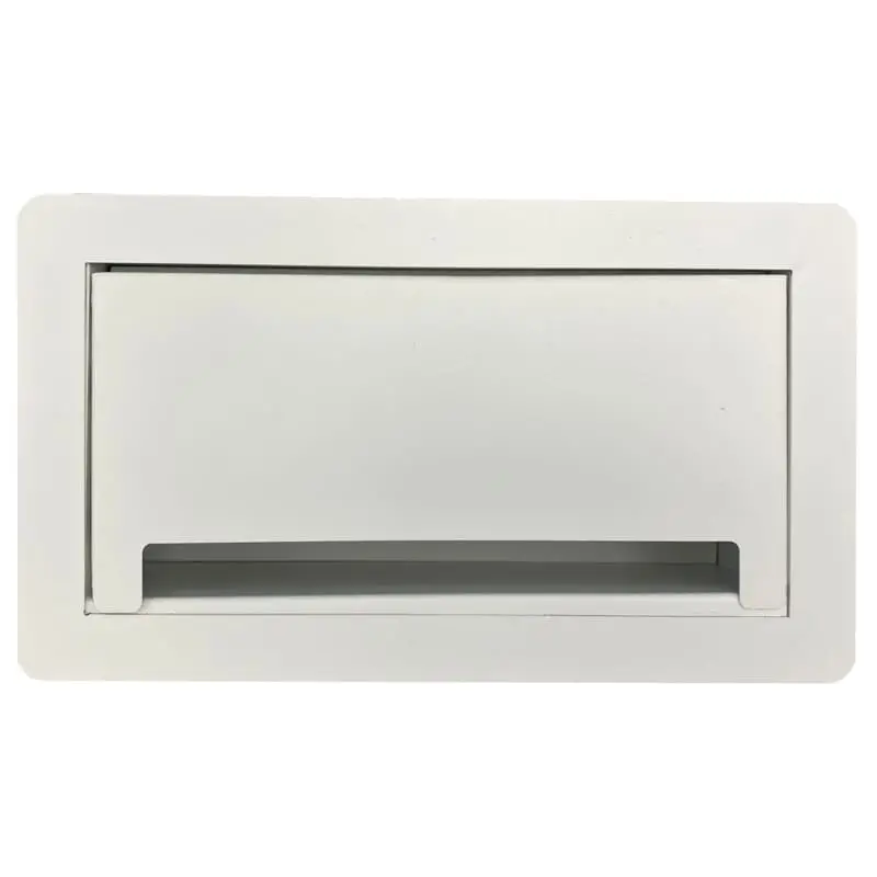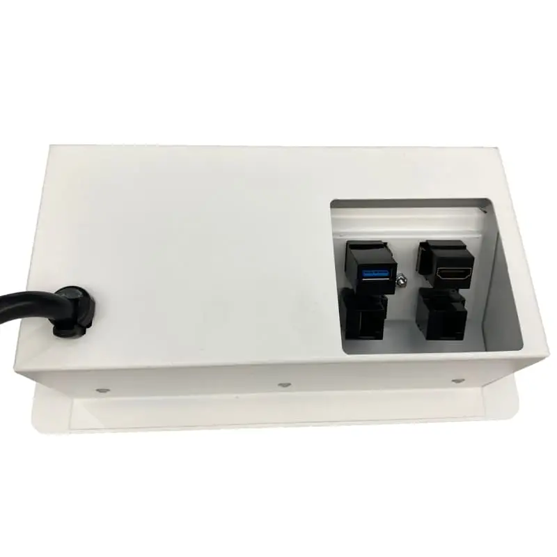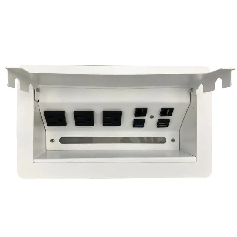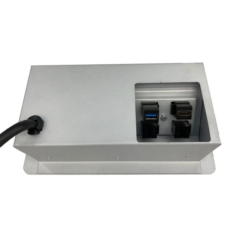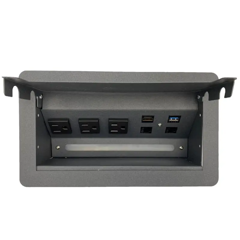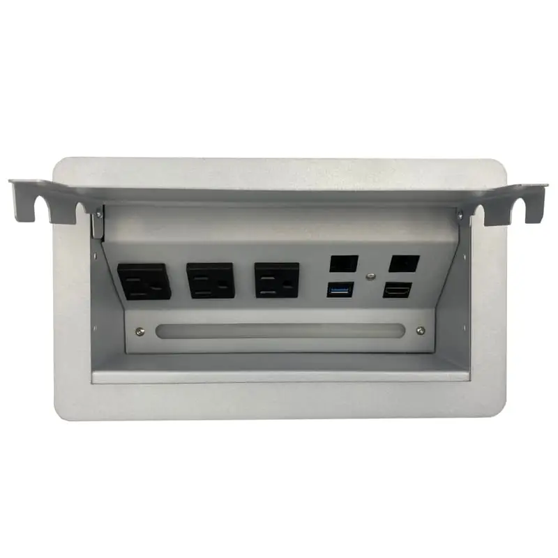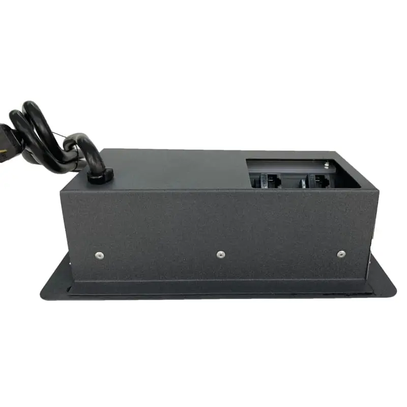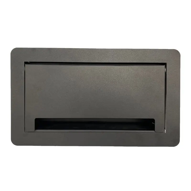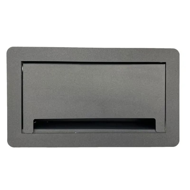 Su sistema de apertura es manual mediante una puerta que nos ayuda a ocultar los contactos cuando no son utilizados. Cuenta con sensor de apertura para luz led. Fabricado en Acero con recubrimiento de pintura electrostática las cual nos ayuda a proteger la calidad y tiempo de vida del color.